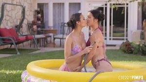 Cooling off with big tits Asian MILF Nicole Doshi and Latina big ass babe