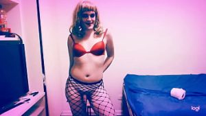 Sissy crossdresser wearing lingerie with tiny pathetic clitoris